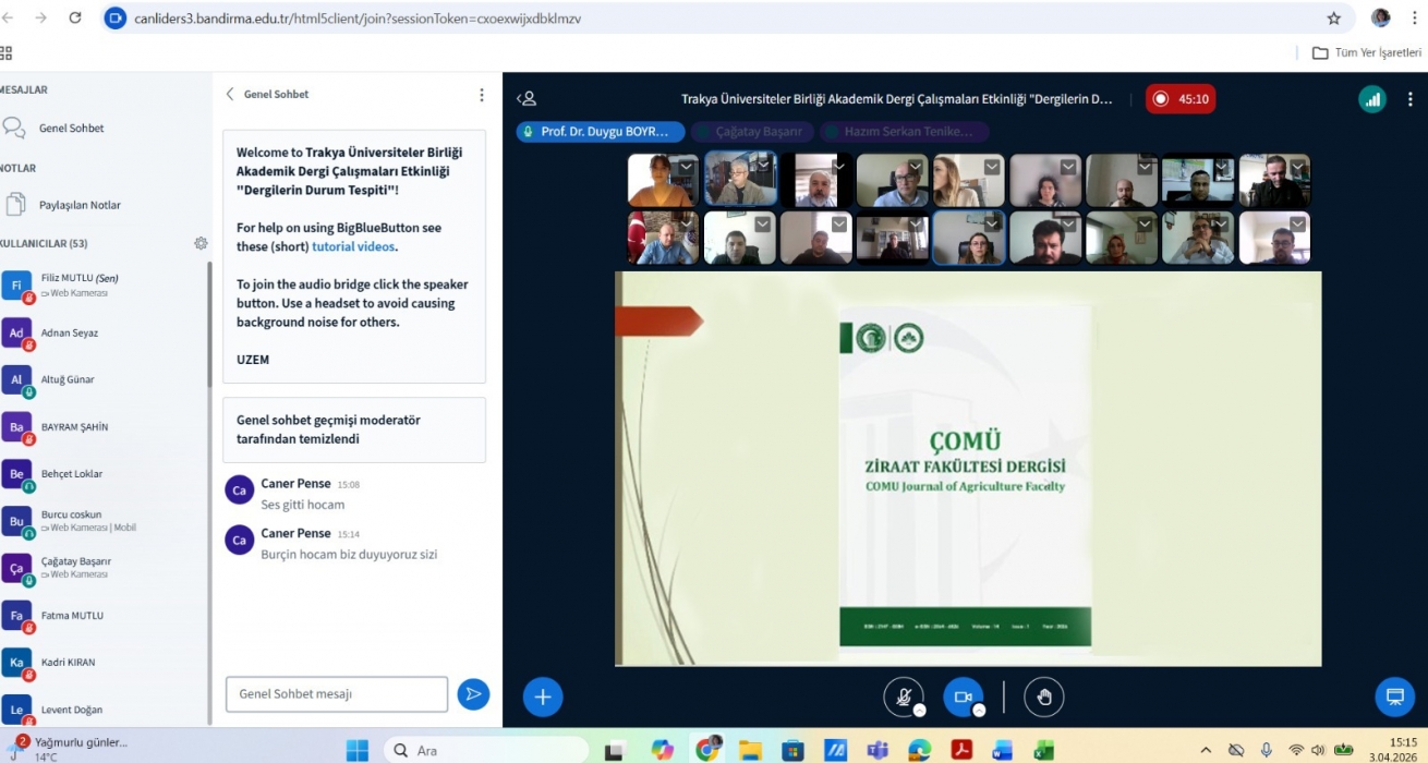 Çanakkale Onsekiz Mart Üniversitesi Bilimsel Yayın ve Dergiler Koordinatörlüğü Trakya Üniversiteler Birliği Akademik Dergi Çalışmaları toplantısına katılım sağladı.